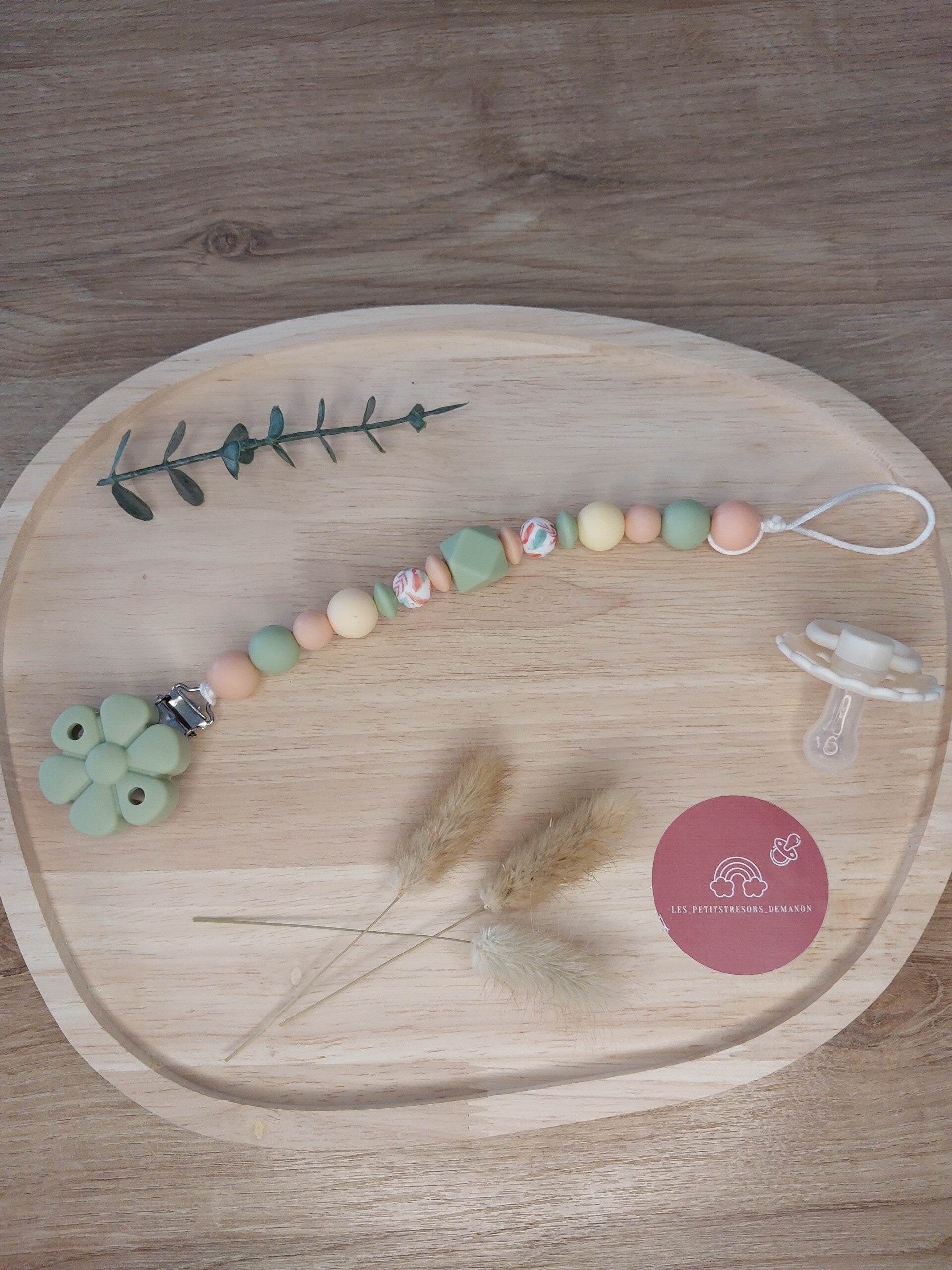 Le nombre de perles peut varier s'il y a ajout du prénom en raison des normes de sécurité des attaches tétines